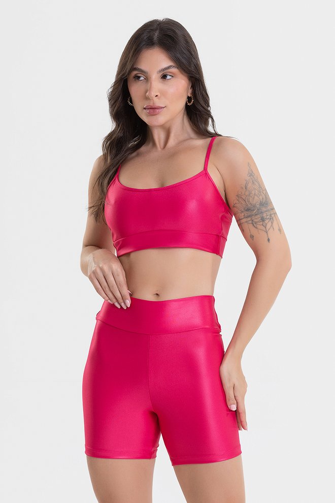 Conjunto Fitness Cirrê Shorts e Top PINK G
