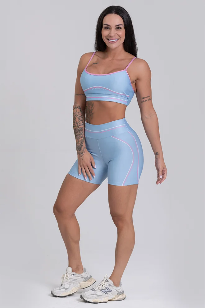 Conjunto Fitness Top e Shorts – Estampa AZUL CANDY
