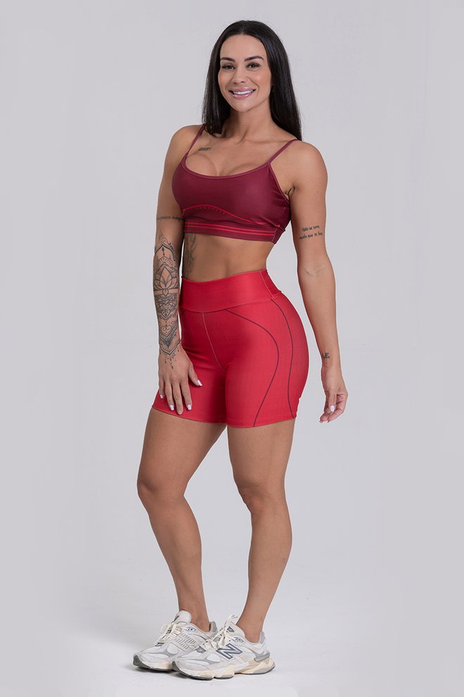 Conjunto Fitness Top e Shorts – Estampa BORDO WINE